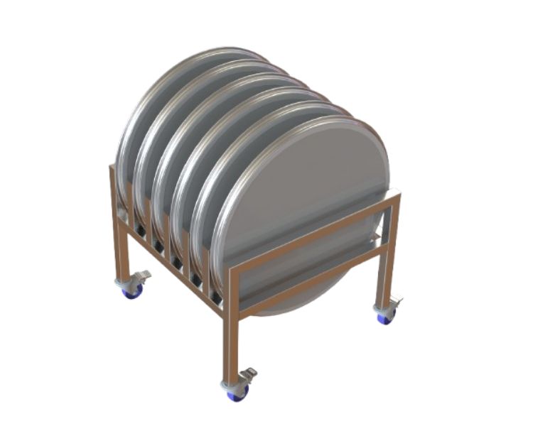 Equipado con ruedas industriales, permite un transporte fácil y seguro dentro de las instalaciones.