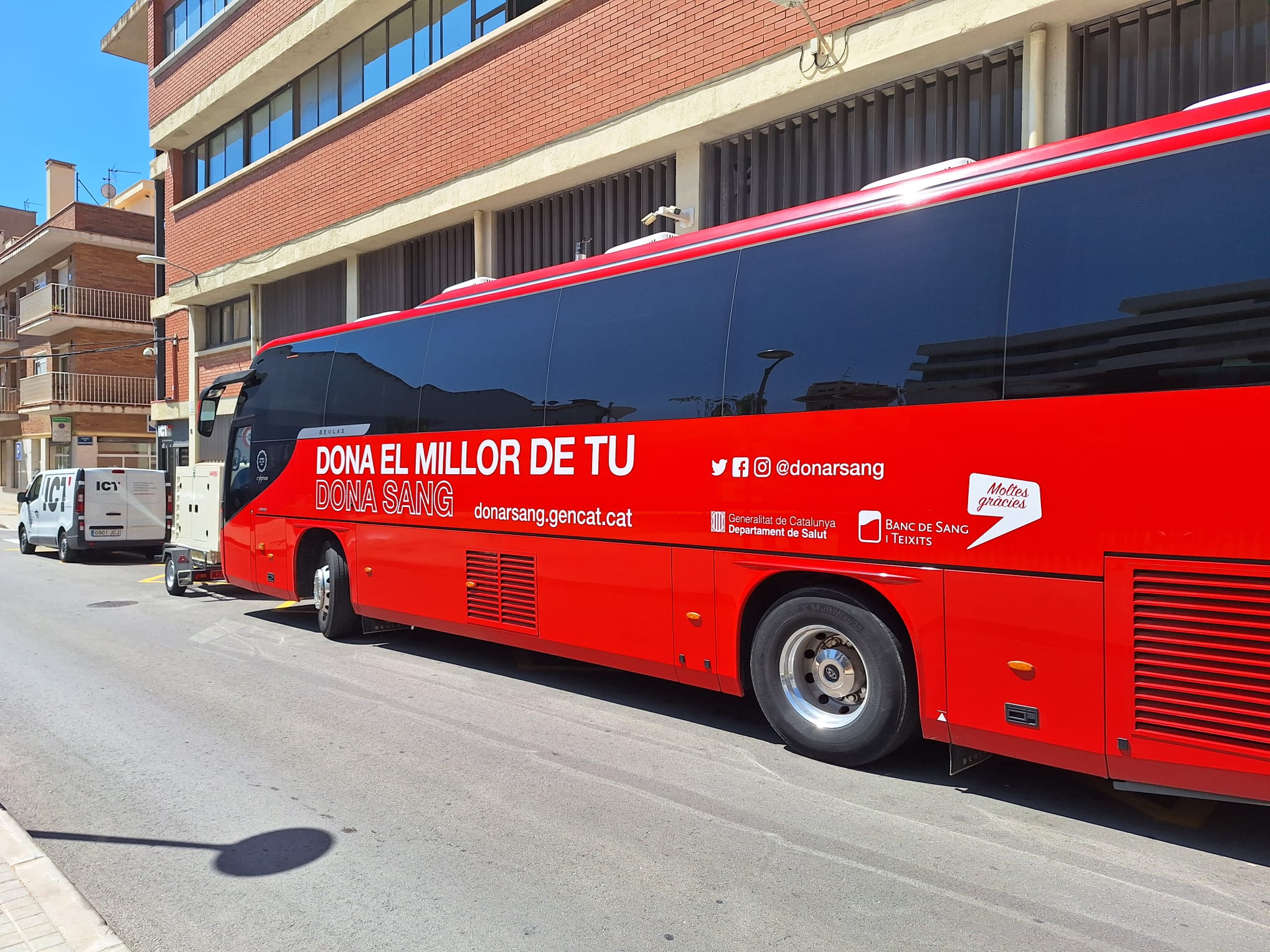 La Unidad Móvil del Banco de Sangre se ubica frente a nuestras instalaciones. Durante cuatro horas, procedemos a donar voluntariamente y de forma organizada.