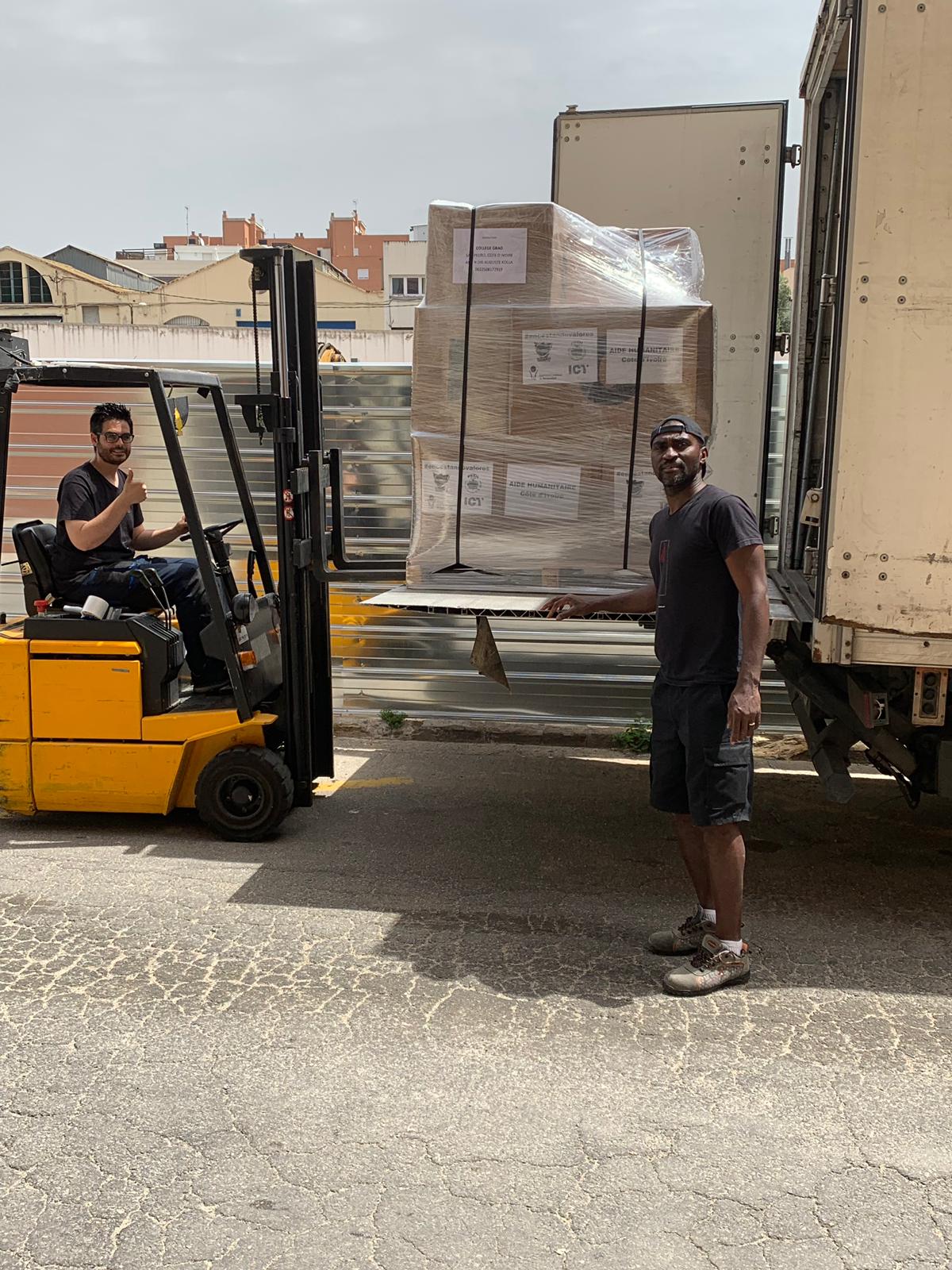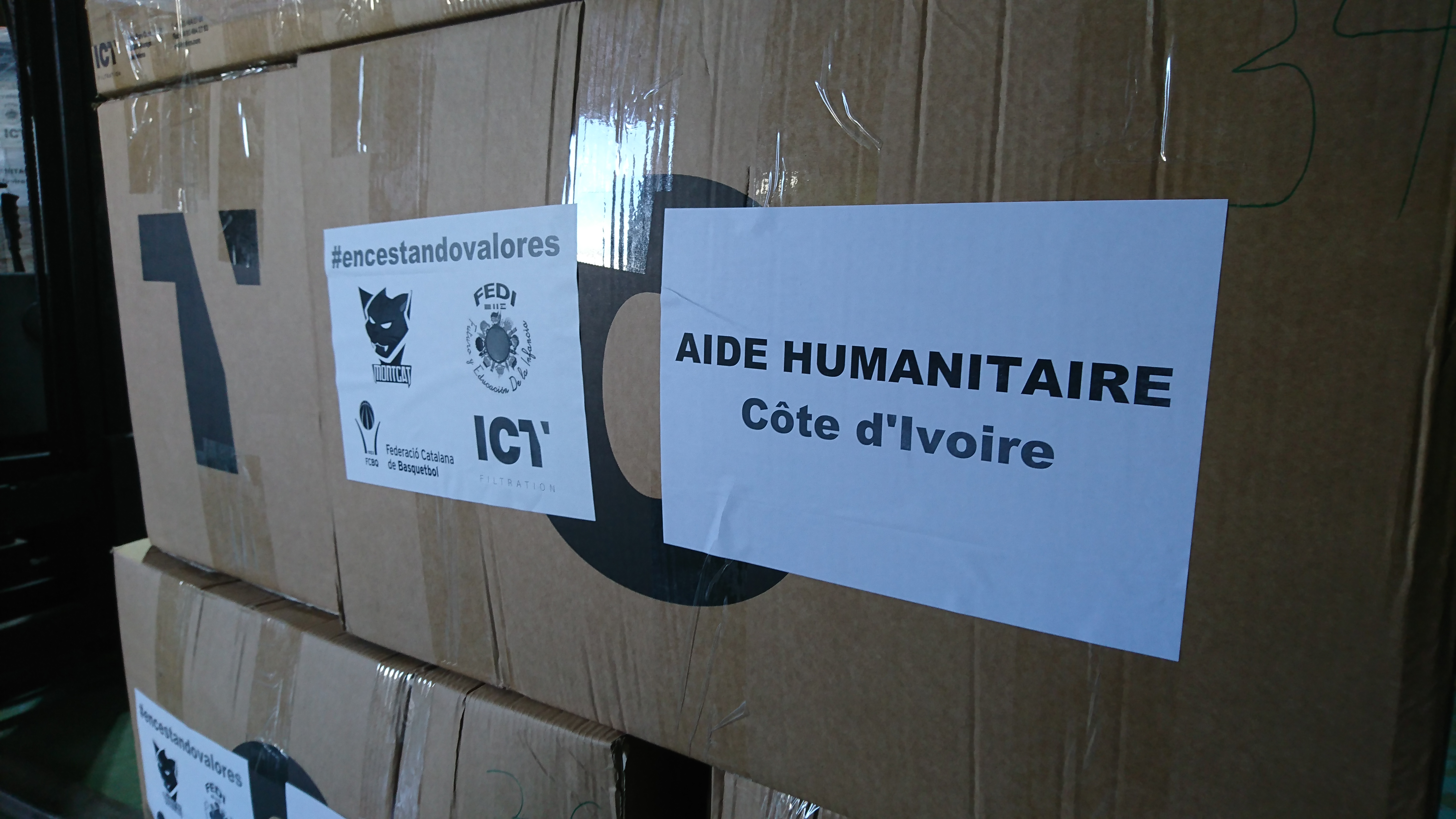 Ni más ni menos que 5.059 piezas de ropa, 396 pares de calzado, 2 canastas y 80 pelotas de baloncesto, comida, juguetes y material sanitario. Todo esto contenido en nuestras cajas, sale de ICT FILTRATION hacia Costa de Marfil con escala en París.