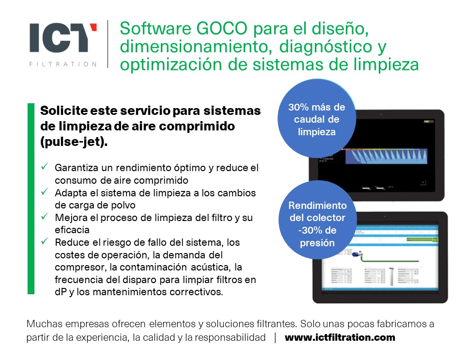 El software #GOCO, de #Pentair, es una potente herramienta para el diseño, dimensionamiento, diagnóstico y optimización de sistemas de limpieza de aire comprimido (pulse-jet) en instalaciones filtrantes.