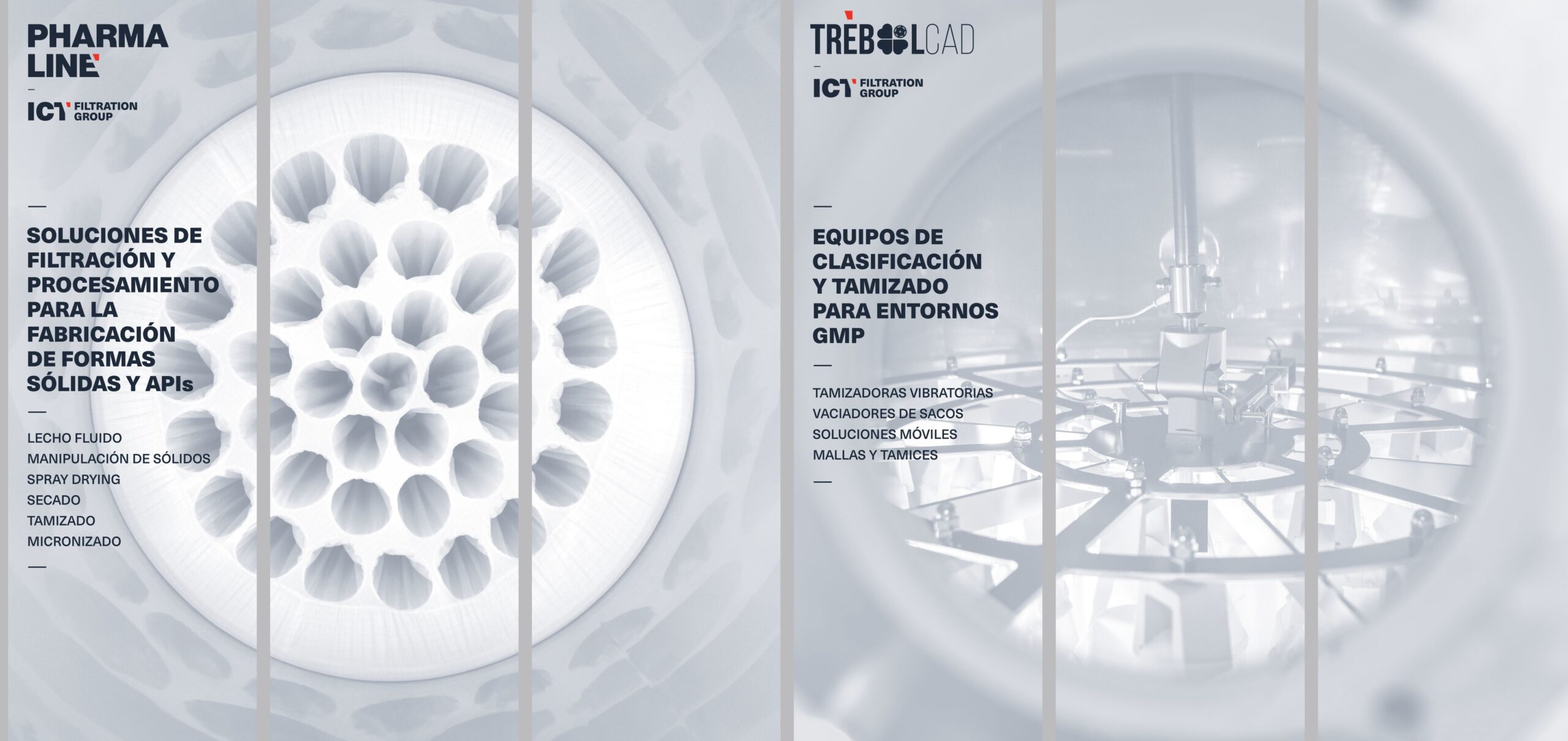 Los días 17 y 18 de septiembre ICT Filtration Group estuvo presente en Farmaforum con sus marcas PharmaLine y TrébolCAD. Durante dos días presentamos nuestras soluciones especializadas en filtración y cribado para la industria farmacéutica, diseñadas y fabricadas siguiendo los estándares GMP, ATEX, FDA y EU 10/2011.