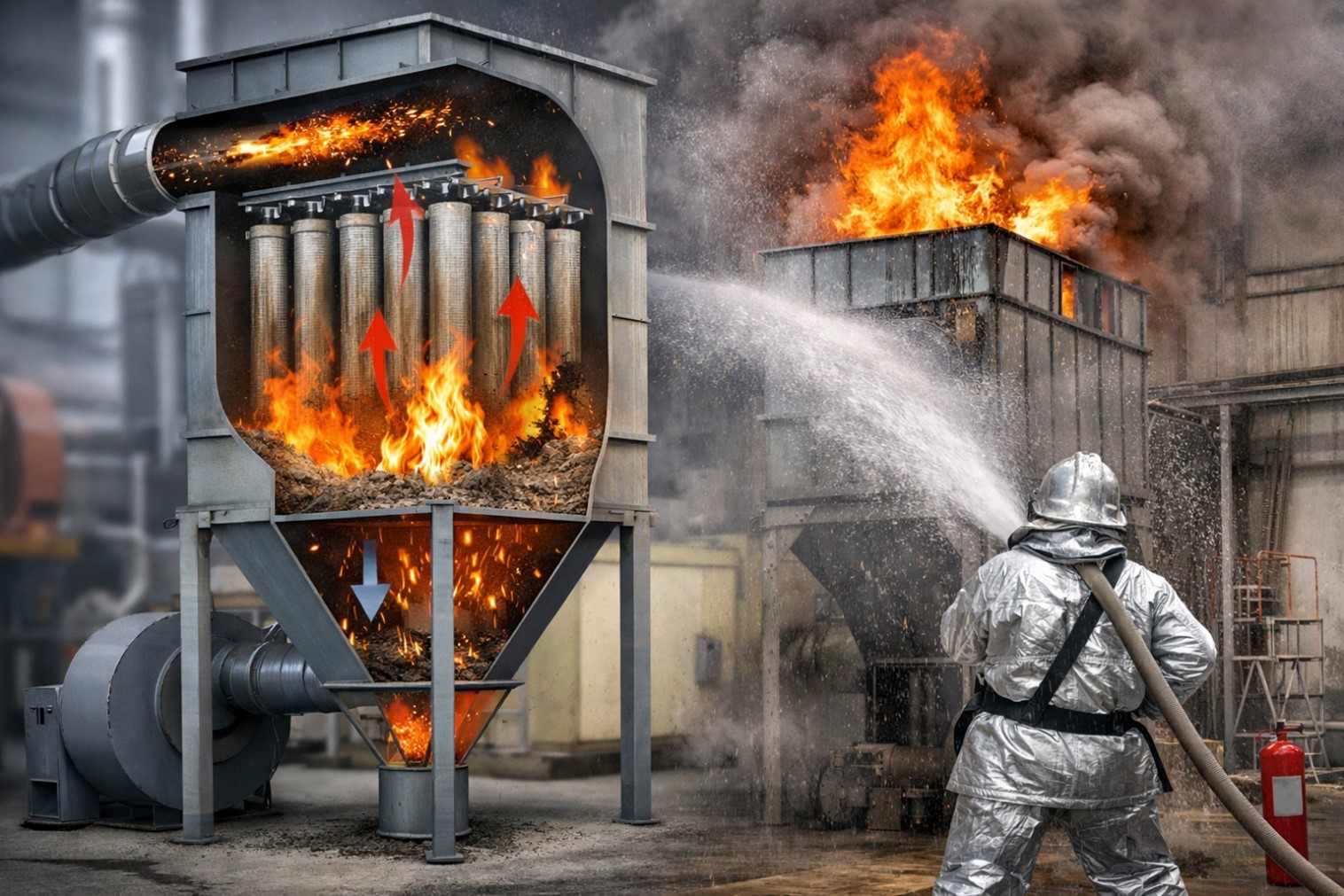 Los sistemas de filtración industrial mediante filtros de mangas y filtros de cartucho son fundamentales para el control de emisiones, la protección ambiental y la seguridad en planta. Sin embargo, cuando confluyen determinadas condiciones de proceso, estos equipos pueden convertirse en un punto crítico de riesgo de incendio, con consecuencias graves: paradas de producción, daños materiales y elevados costes operativos.
