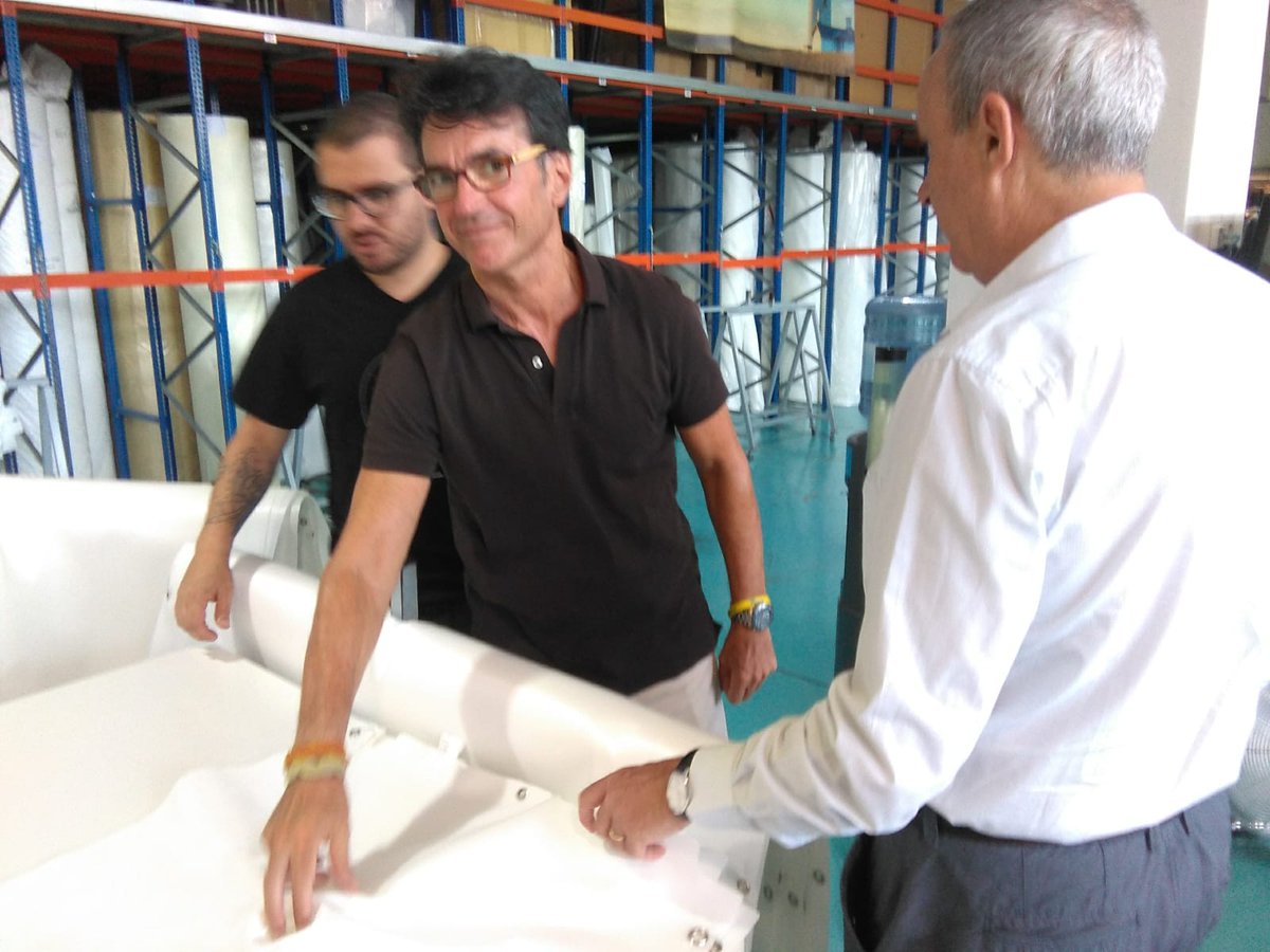 Durante la visista se les informó de las singularidades de la tecnología de acabado por ultrasonidos y termosoldado en la confección de mangas filtrantes. También tuvieron ocasión de descubrir algunas de las innovaciones incorporadas en los últimos tiempos en la fabricación, tanto en lo que concierne a organización de los flujos de trabajo como a las desarrolladas e incorporadas en procesos mecánicos y automáticos de la producción.