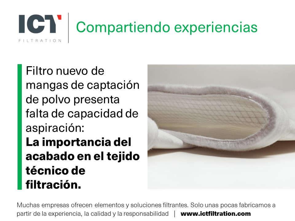 Cliente dedicado a la nutrición animal nos expone que está teniendo problemas con un filtro nuevo de mangas de captación de polvo. Presenta falta de capacidad de aspiración y no sabe encontrar el motivo.